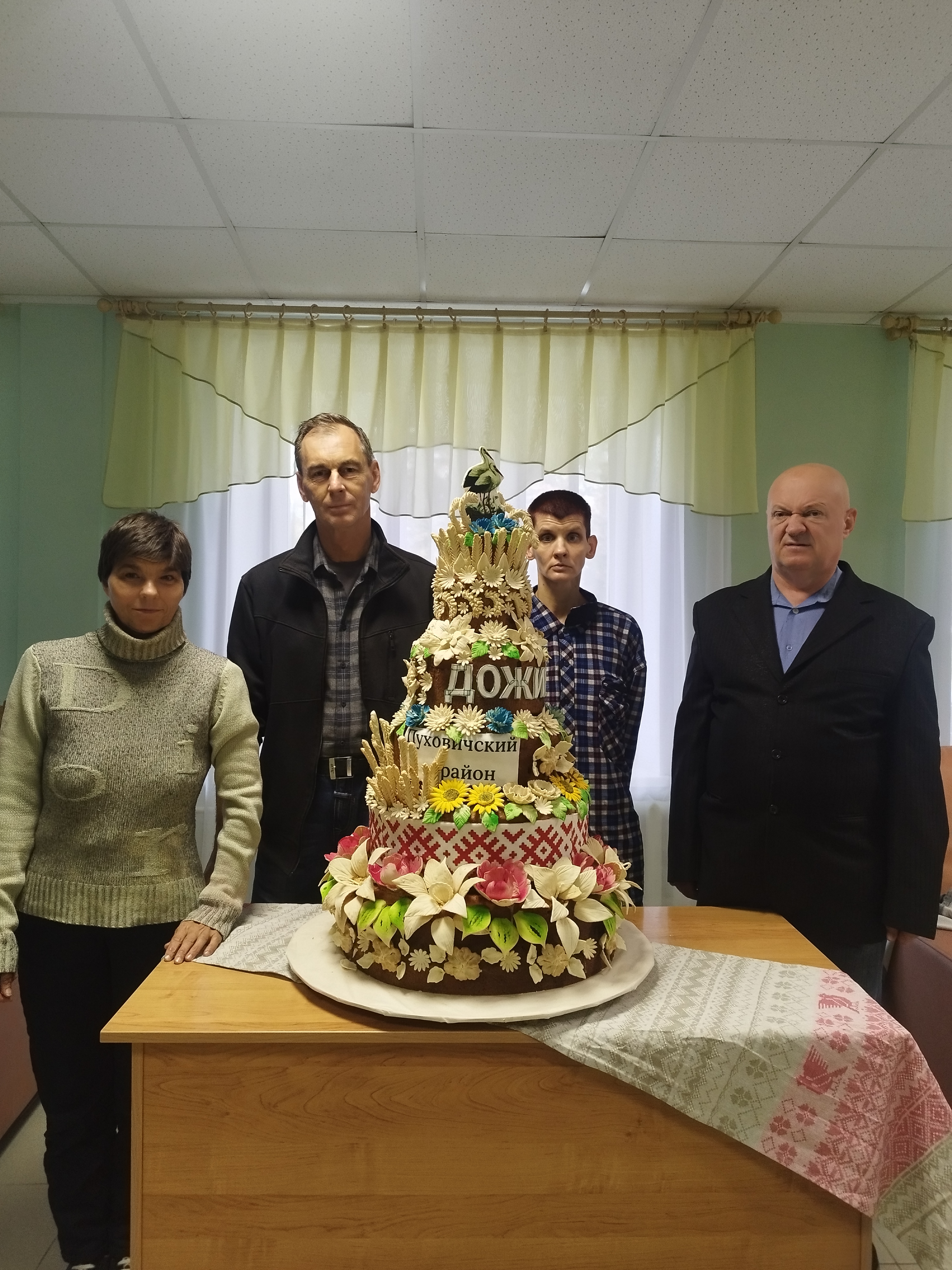 Каравай Пуховичского района на областных «Дожинках» собрал много восхищенных взглядов. И по доброй многолетней традиции после областных «Дожинок» районные власти передали выставочный хлебный каравай в Пуховичский социальный пансионат «Семейный очаг».